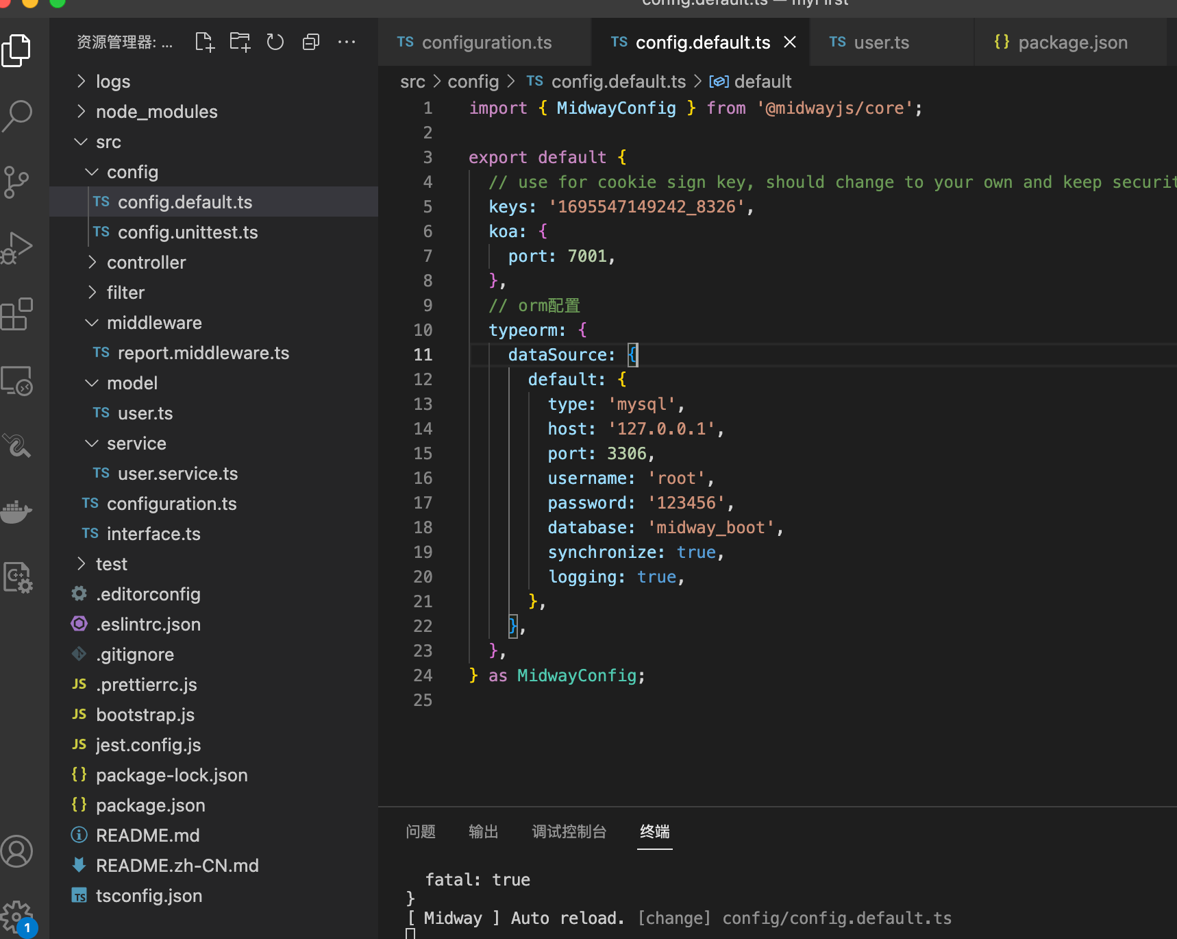 3.4、配置config.default.ts