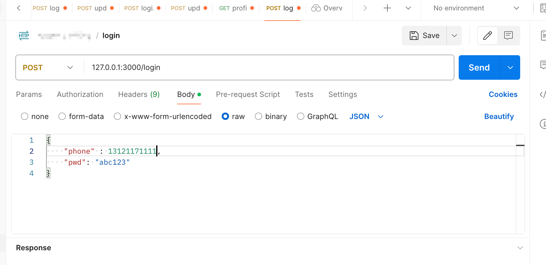 当你通过postman这个软件,模拟一个请求:http://127.0.0.1:3000/login