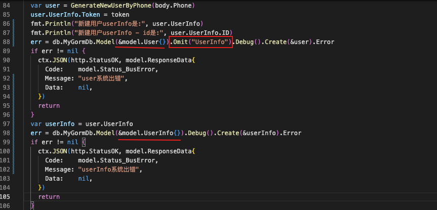 在使用gorm插入数据时,有2张表是关联的,两张表分别是User和UserInfo表,而User和UserInfo是HasOne关联关系。