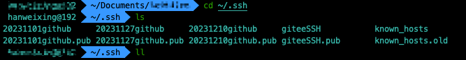 这样子就会在ssh文件下生成了2个密钥文件,公钥以.pub为扩展名